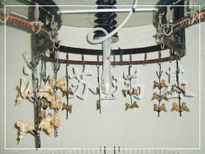 涂裝生產(chǎn)線是通過輸送設(shè)備來實(shí)現(xiàn)的連續(xù)生產(chǎn),因此它在涂裝生產(chǎn)線上廣泛被采用.通常用的輸送設(shè)備有:懸擺式輸送鏈,電軌懸掛輸送鏈,滑橇式地面輸送鏈,普通和輕型懸掛輸送鏈,普通和輕型積放懸輸送鏈,地面積放輸送鏈,反向積放輸送鏈等.汽車涂裝線的前處理、電泳生產(chǎn)線,一般采用積放鏈、普通懸鏈、電軌小車等;中涂、面漆采用滑橇式地面輸送鏈或其它形式的地面輸送設(shè)備。對于摩托車、家電或其它工件,可采用普通和輕型積放懸掛輸送鏈。對懸掛輸送鏈,為防止鏈條油污等污染懸鏈上的工件,常采用集油盤和“C”型吊具。