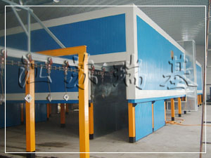 涂裝烘干設備目前應用極為普遍的一種是利用熱風循環設備(有直通式烘干室和橋式烘干室)。